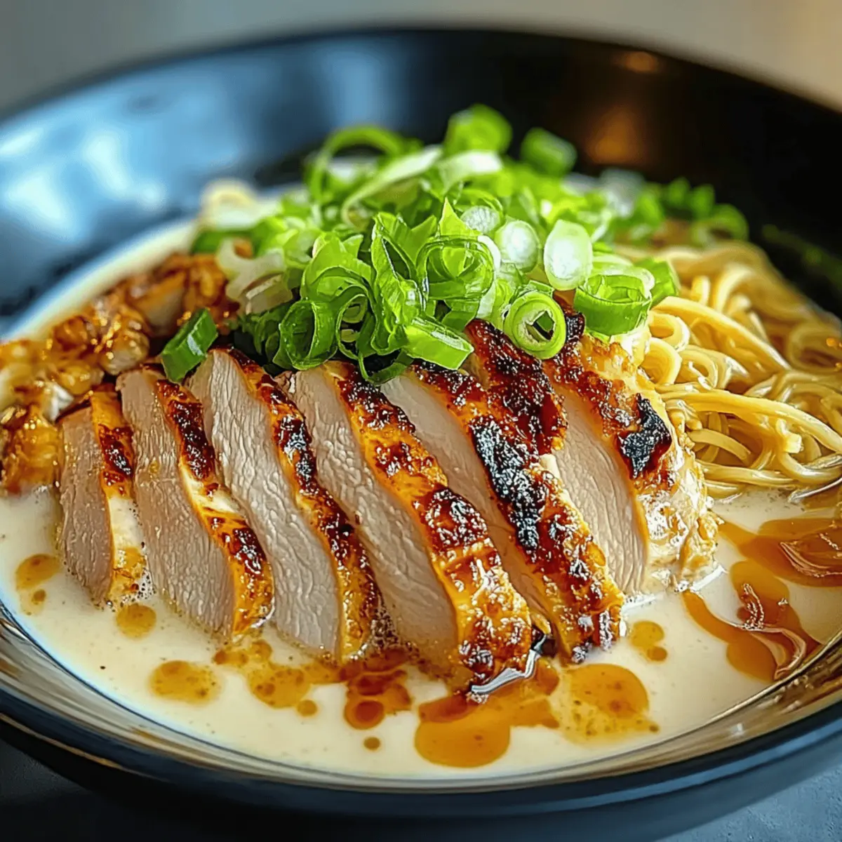 - Slice the resting chicken into bite-sized pieces. Serve the creamy ramen noodles in bowls, topped with the sliced chicken.